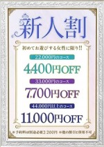 今なら新人奥様がお得です! 2万円のコース4400円割引 3万円のコース7700円割引 4万円以上のコース11000円割引 ※初めて遊ぶ女性に限る 当店の詳細⇒https://...